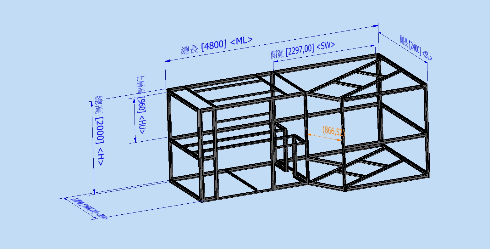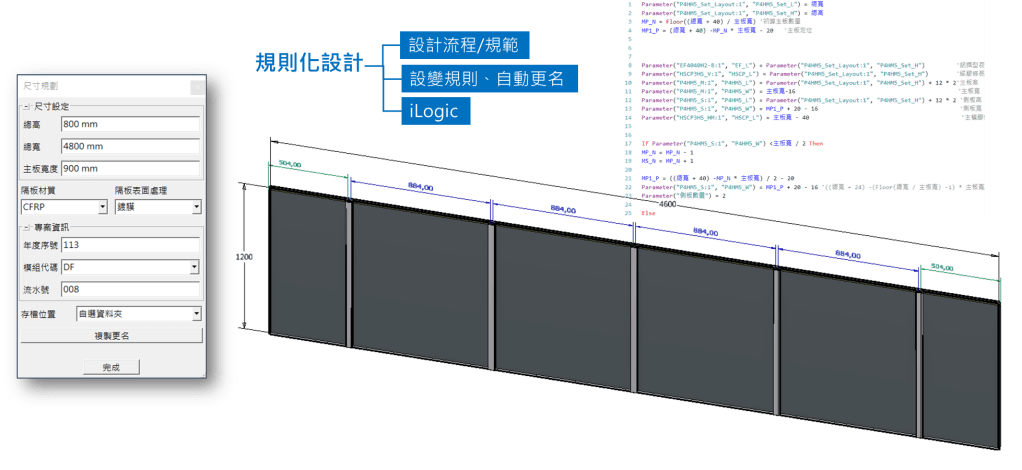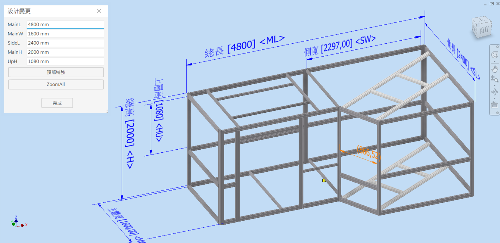 3D CAD設計參變數模型,藉由表單內輸入尺寸進行設計修改