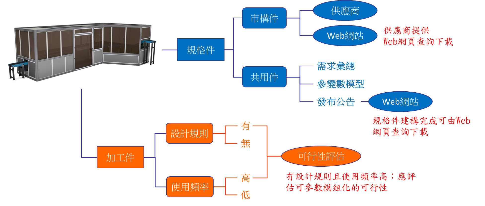 整組設備進行自動化設計確實要考慮、評估的變數太多,先由拆解模組、零部件作參變數模型開發;使其成為可規則設變或規格化零部件,聚沙成塔;堆疊出提升效率的流程應用。