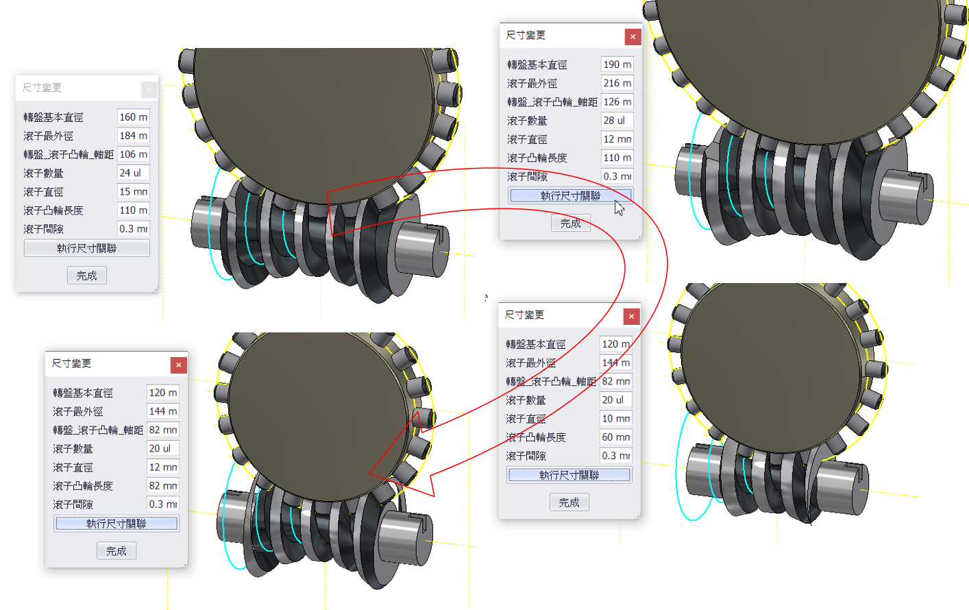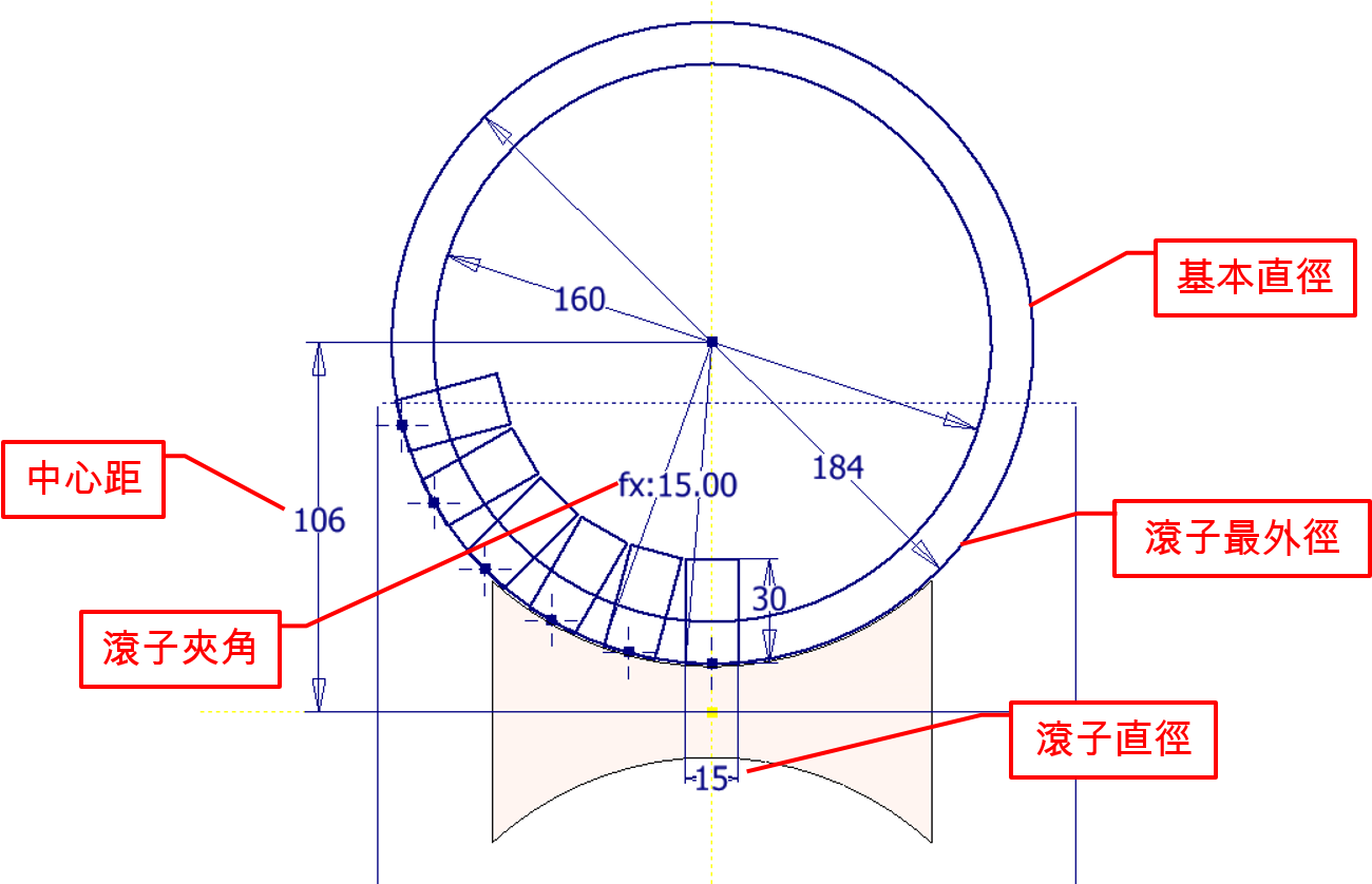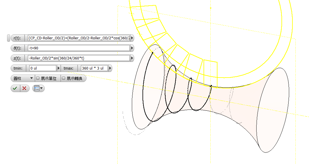 >>滾子運行軌跡的螺旋線與滾子最外徑&中心距相關