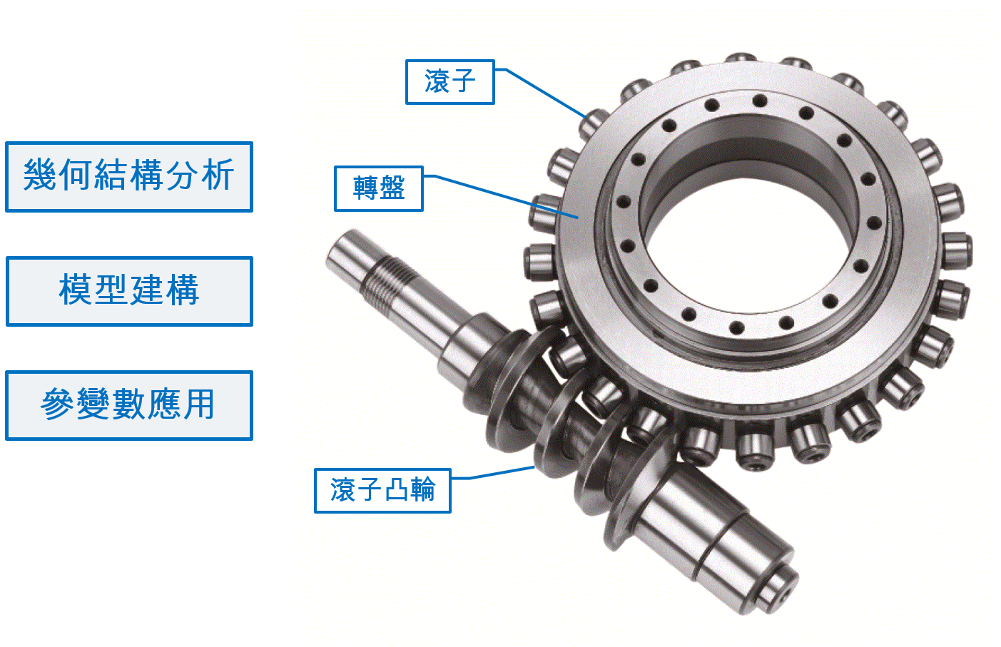 >> 方程式 : 須具備幾何方程式計算能力,準確性高;但若較複雜的運動機構(間歇式凸輪),方程式計算挑戰更高